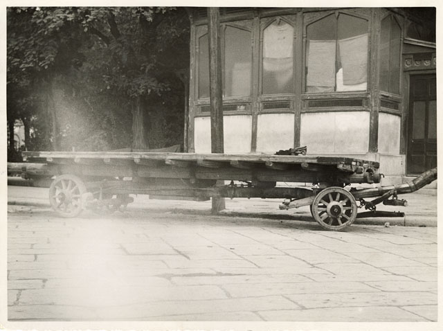 Tipico carro da trasporto trasformato in greppia per il rifornimento di un cavallo che conserva le caratteristiche bardature