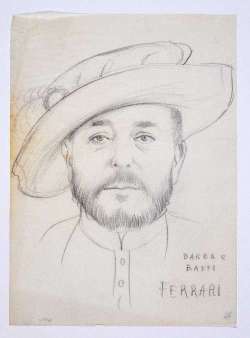 Il gioco dei potenti, da Enrico VI di William Shakespeare. Ritratto di volto maschile con cappello rinascimentale.