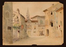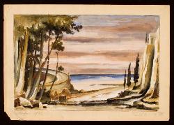 Bozzetto raffigurante un paesaggio pedemontano boscoso