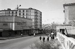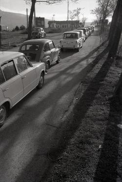 Venditore di caldarroste in viale e segnali di sosta incappucciati