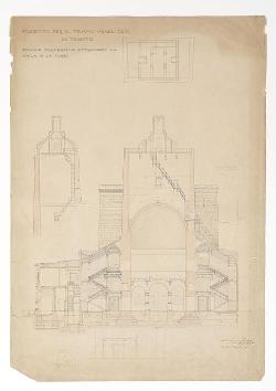 Progetto per il tempio israelitico in Trieste. Sezione trasversale attraverso la scala e la torre