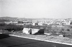 Borgo S. Sergio con alberi in fiore e zona industriale