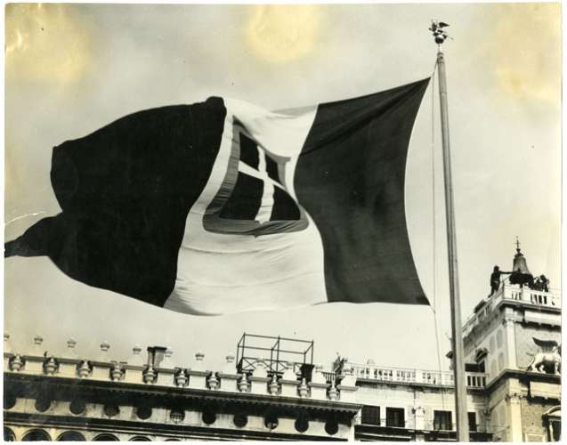 Dopo la liberazione, il Tricolore italiano sventola in Piazza S. Marco.