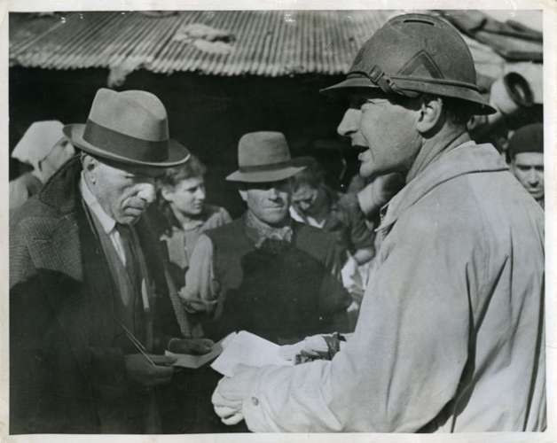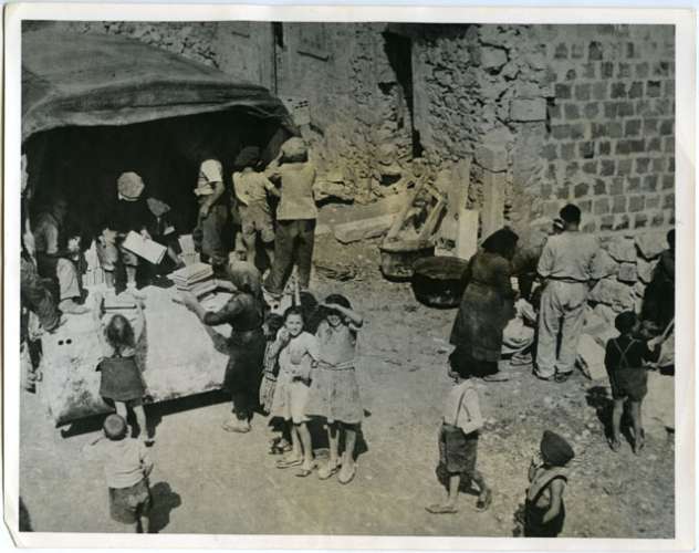 Gli abruzzesi ricostruiscono le loro case con l'aiuto della "British friends Ambulance Unit". L'arrivo dei mattoni a Colledimacine