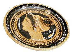 Pelike apula a figure rosse. Lato A: testa femminile. Lato B: colomba con foglia d'edera