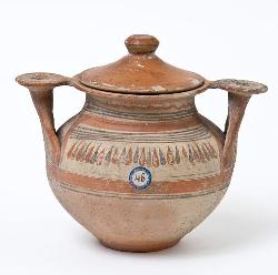 Olla con anse a scalpello e rotella in ceramica messapica con coperchio