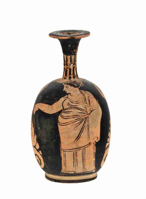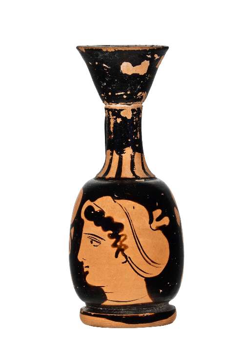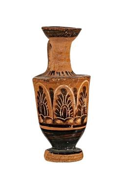 Lekythos attica a figure rosse con palmetta ad antefissa.