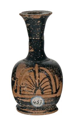 Lekythos attica a figure nere con motivo a raggiera e boccioli di loto