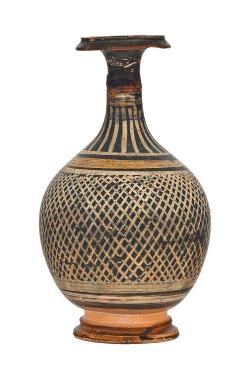 Lekythos apula a reticolato nero e onda corrente