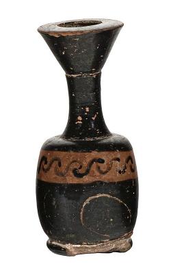 Lekythos ariballica attica a figure nere con fascia a meandro