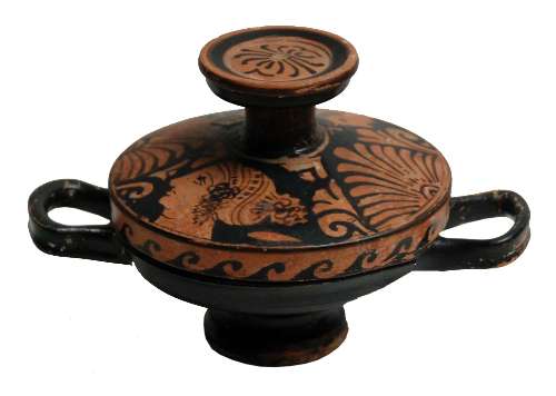 Lekanis siceliota a figure rosse con teste femminili sul coperchio