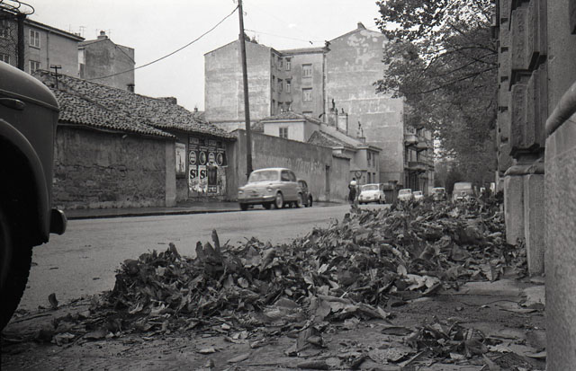 Foglie ammucchiate sui marciapiedi (via Rossetti?)