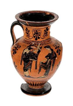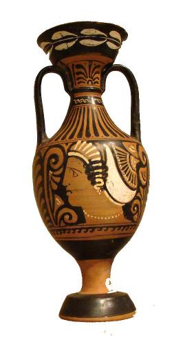 Piccola anfora attica a figure nere. Lato A: Eracle uccide l'Idra. Lato B: Aiace e Cassandra presso il Palladio