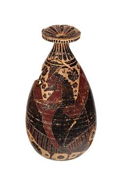 Alabastron a calamaio a vernice nera sovraddipinta a reticolo