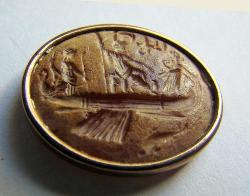 Gemma con nave e divinità e iscrizione in corniola in anello moderno da Aquileia