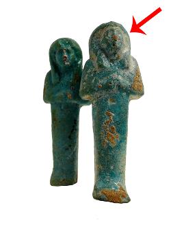 Parte superiore di ushabti in faience con iscrizione illeggibile, dall'Egitto