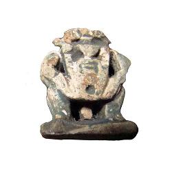 Amuleto in faience raffigurante Bes bifronte, con la corona spezzata, dall'Egitto