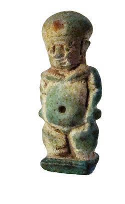 Amuleto raffigurante Pateco con anello dietro il collo, dall'Egitto