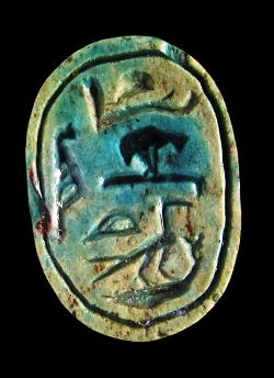 Scaraboide in faience con geroglifici incomprensibili, dall'Egitto