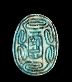Scaraboide in faience con segni geroglifici, dall'Egitto