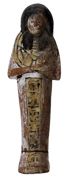 Ushabti in terracotta dipinta con iscrizione illeggibile, dall'Egitto