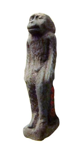 Amuleto a forma di babbuino Thot stante su base con anello dietro la schiena, dall'Egitto