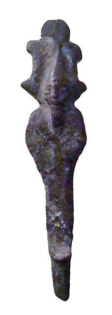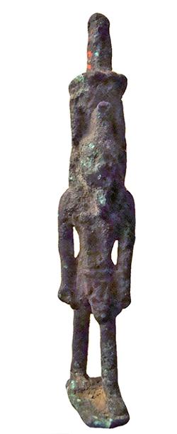 Amuleto in bronzo raffigurante Osiride con perno sotto i piedi, dall'Egitto