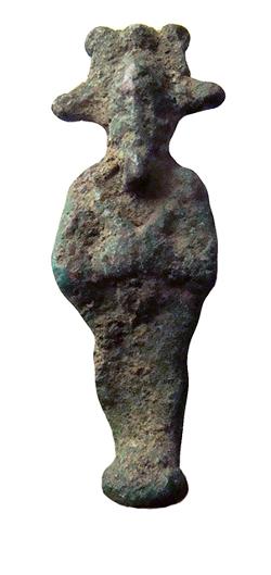 Amuleto in bronzo raffigurante Nefertum con anello sul retro della corona, dall'Egitto