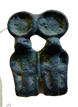 Amuleto raffigurante Osiride con anello sulla schiena, alla caviglia destra, dall'Egitto