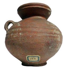 Oinochoe con ansa sopraelevata in ceramica grezza