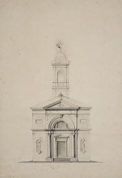 Progetto di chiesa in stile neoclassico con campaniletto posteriore