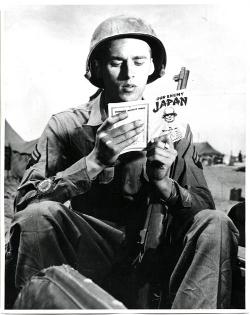 Preparing for new Joe : u.s. corporal Joseph Melosh, a typical Gi Joe" of the European Theater of operations, reads up the Japanese ...