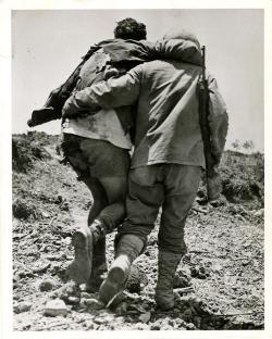Wounded U. S. Marine helped to rear