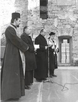 Il Parroco Serbo-Ortodosso, i due Sacerdoti Cattolici e il Rabbino durante la cerimonia religiosa di consegna delle ceneri