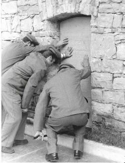 I militari depongono le cassette delle ceneri nella nicchia ricavata nel muro