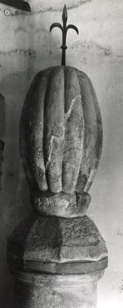 Il melone acroterio di arenaria, sormontato dall'alabarda