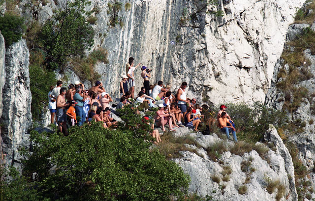 Frecce Tricolori, gente, folla Napoleonica. Traffico Opicina, porticciolo Barcola Cedas, rocce di Prosecco, rimorchiatori marini.
