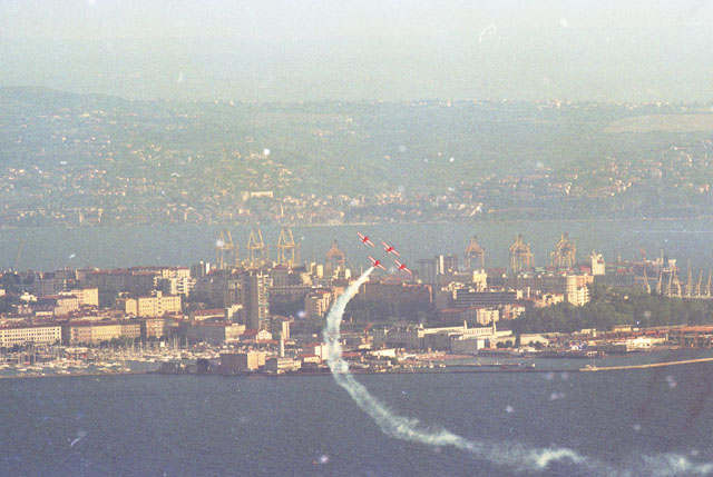 Samer, Marconi, Aliscafo Calarossa, stazione marittima. Frecce Tricolori, 1999, riviera di Barcola.