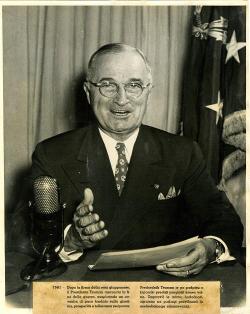 Harry S. Truman mentre rivolge un discorso ai soci di un'organizzazione americana