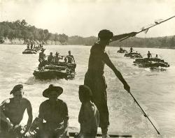BURMA: "DUCKS" TAKE SUPPLIES DOWN CHINDWIN FOR FORWARD BRITISH TROOPS