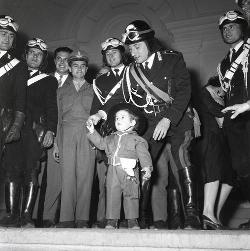 Folla acclama il gen. De Renzi (anche bimbi vestiti da bersaglieri)