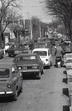 Lunga fila di turisti a Pese (confine con la Jugoslavia)