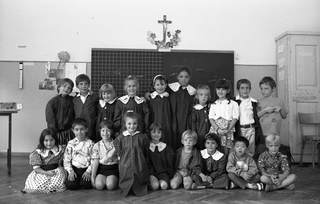 Primo giorno di scuola, elementari, alunni. Giovani ragazze a merenda. Sciopero generale contro finanziaria, 1992, questore 1992.