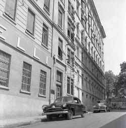 Kaiser Frazer (auto USA) : insegne luminose, dalla terrazza Hotel Milano