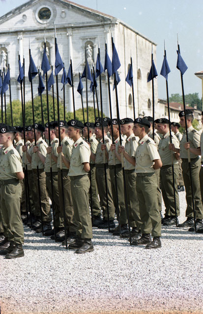 Posta Sistiana. Giuramento reclute militari caserma Brunner, lancieri.