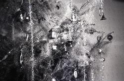 Ritratto di bambina accanto all'albero di Natale e al presepio