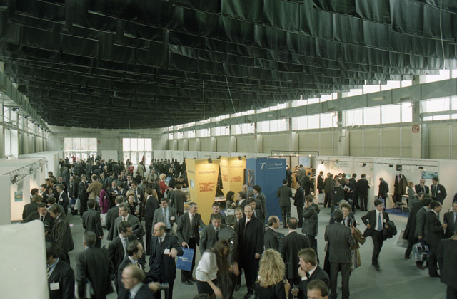 Computer. Provincia-Giuliani nel mondo. Dario Rinaldi. Fiera di Trieste: convegno, fiera economia (02/02/01), computer, padiglioni fiera, interni fiera.
