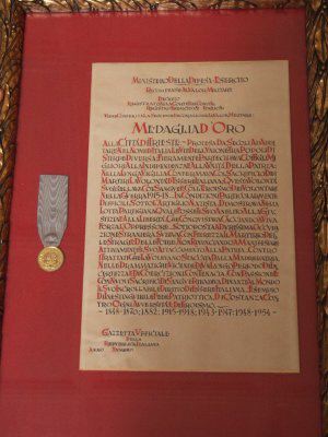 Diploma dell'assegnazione della Medaglia d'Oro al Valor Militare alla Citta' e relativa medaglia : Trieste : 2002