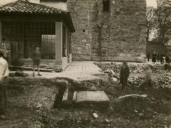 Trieste. S. Giusto. Scavi archeologici ex - fondo Popper : Abside che viene liberato dal muro medievale