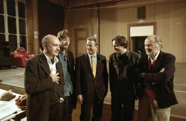 Goran Bregović, Kim Rossi Stuart, Damiani, Calenda al Rossetti. Teatro Verdi interno platea con gente. RItratti di Antonione Roberto. Molo Audace, Rive di Trieste, Traghetto.